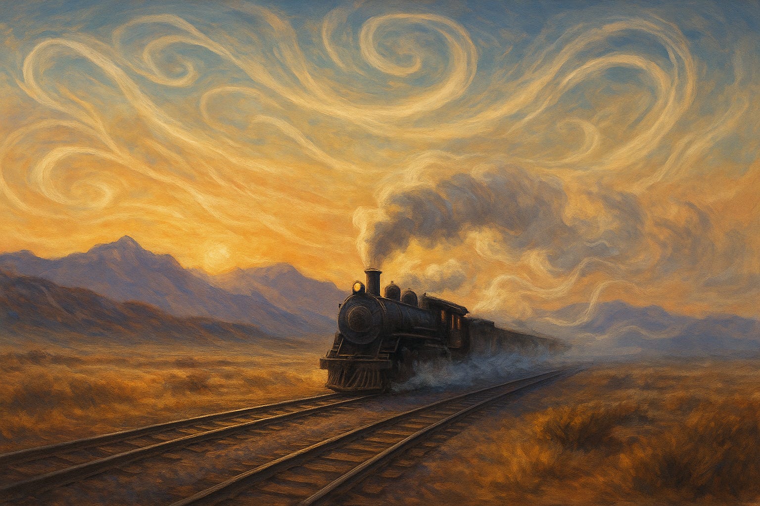 It is on this path that the image of winds and trains has anchored itself deeply in my thinking. Leon writes, “We hear trains in the background, and the wind and dry mountainous desert surround us” (2012, p. 52). It is a deceptively simple sentence, but it holds multitudes. The train — an unmistakable symbol of colonial expansion and the relentless forward push of Western ideology — hums in the distance, a constant reminder of the systems we inhabit. Yet, around it, the wind moves freely across the land, carrying stories far older than the tracks. Together, they form a landscape of tension and possibility — one I find myself walking within every day.